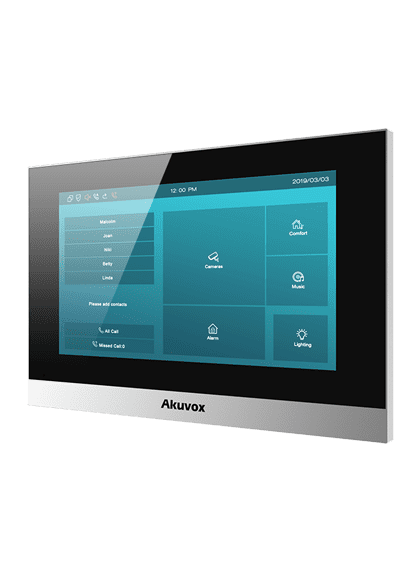 پنل اقتصادی آیفون تصویری Akuvox مدل C313N از سیستم عامل لینوکس بهره می برد. این مانیتور هوشمندبا قابلیت اتصال مستقیم کابل شبکه قادر است با اینترکام های هوشمند(پنل بیرونی ساختمان) ارتباط صوتی و تصویری از طریق پروتکل SIP ورژن 2 برقرار نماید.همچنین در صورت برقرای ارتباط با چندین مانیتور در یک ساختمان هوشمند باید از سوئیچ شبکه استفاده نمود.